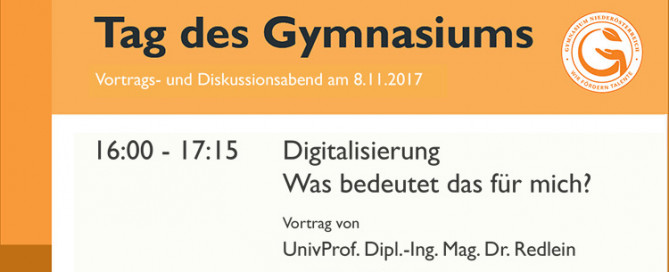 Einladung zu Vortrag und Diskussion anlässlich des „Tag des Gymnasiums“. Prof. Dr. Alexander Redlein spricht zum Thema: Digitalisierung. […]