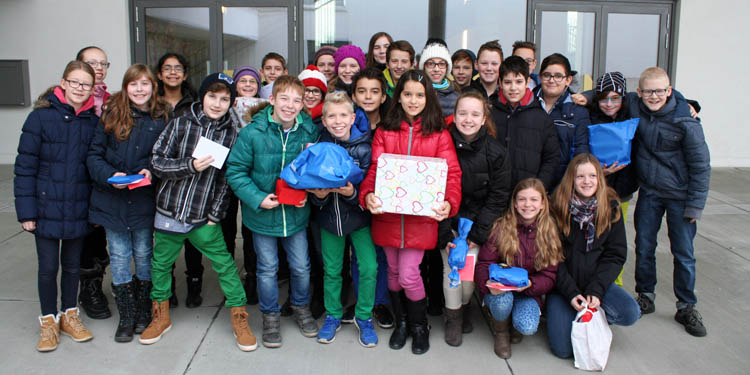 Freudig wurden wir am 15. Dezember 2015 von Flüchtlingsfamilien im Containerdorf neben unserer Schule empfangen.